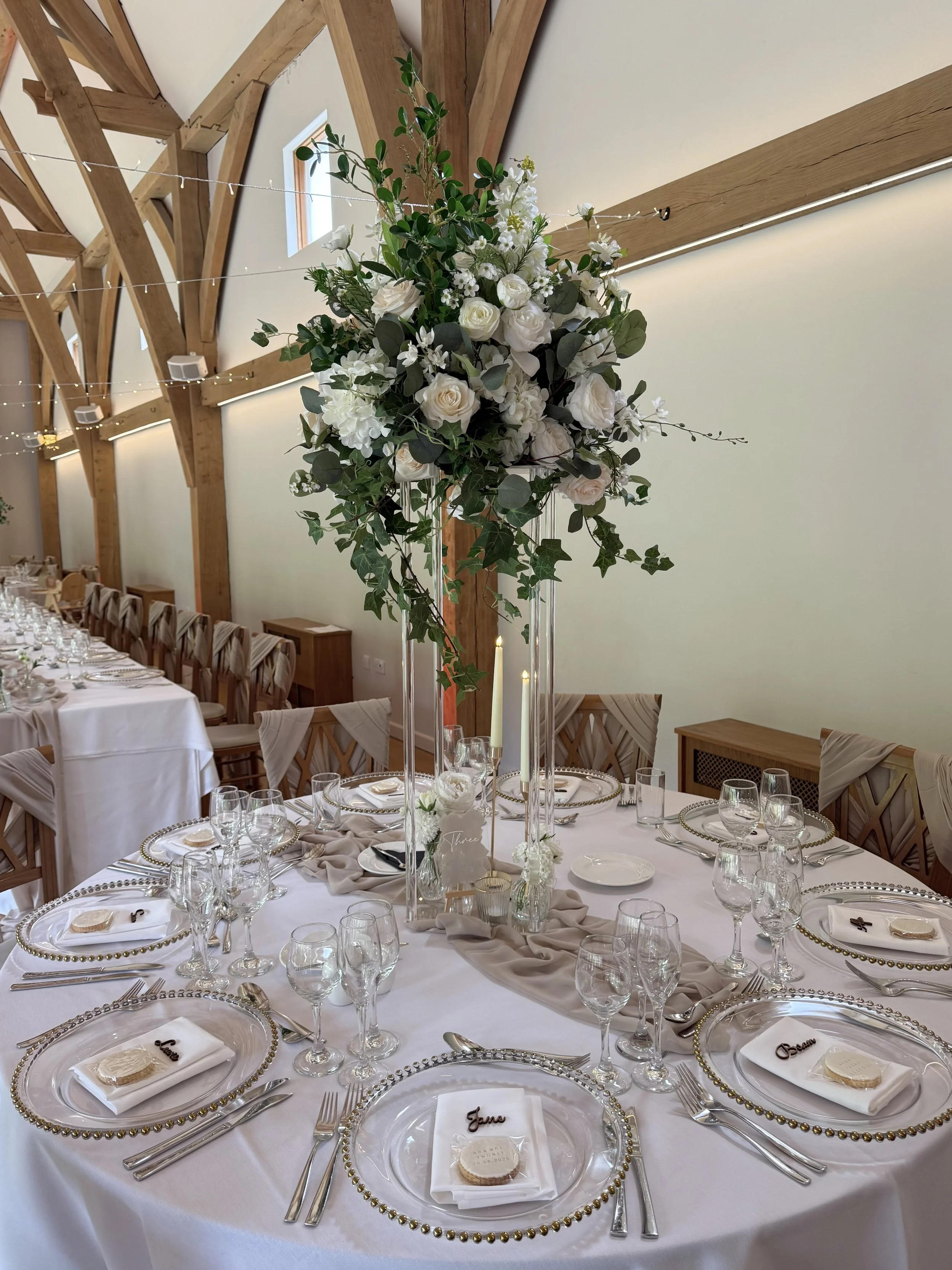 Take your pick from the ALL of the centrepieces we have to offer! We have lots of low options, such as candle centrepieces, bud vases etc. Or fancy something tall, our range of faux floral risers are included too!
